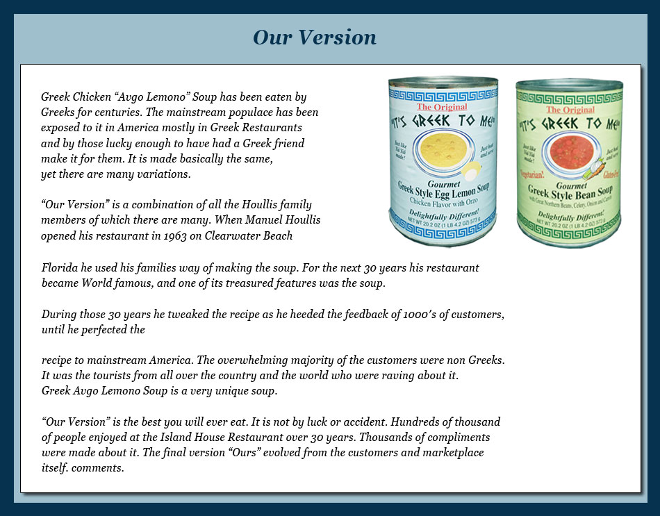 Aside from most Greek homes, this soup is served in many Greek restaurants and enjoyed all over the world. There are many versions of the recipe.